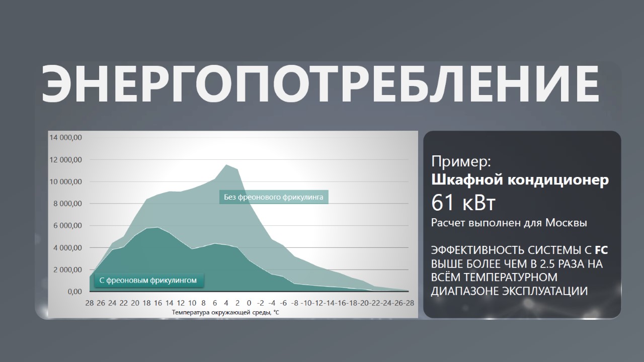 - В зонах с умеренным и холодным климатом(90% территории России) фрикулинг может работать до 80% времени в году, значительно сокращая затраты.