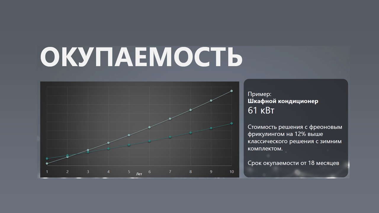 Для решения вопросов надежности, снижения капитальных затрат и более простого проектирования и монтажа была разработана инновационная система фреонового фрикулинга.