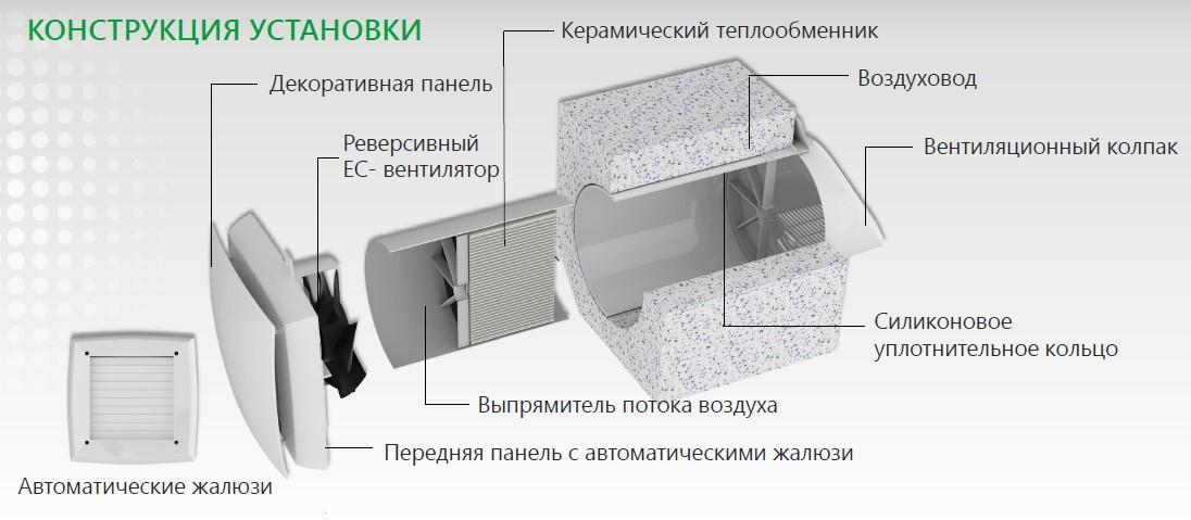 установка внутристенного монтажа с фильтрами и реверсивным вентилятором) в